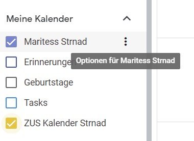 Mit dem loggt ihr euch über Google ein und erstellt einen Kalender. In diesen könnt ihr eure (privaten/anderweitigen) Termine eintragen. Auf der linken Seite seht ihr den Namen eures Kalenders. Über die drei Punkte könnt ihr auf die Seite der “Einstellungen und Freigaben” kommen.
