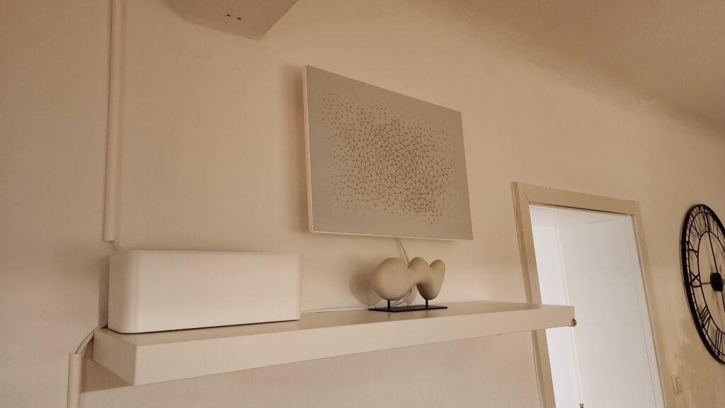 Außerdem gibt es im Flur nun einen zweiten Lautsprecher, der sich als Bilderrahmen tarnt, damit Gespräche im Teamraum und in den Untersuchungsräumen nun noch besser verhallen. Es lässt sich wie gewohnt alles über den Lautsprecher neben der Tür steuern.
